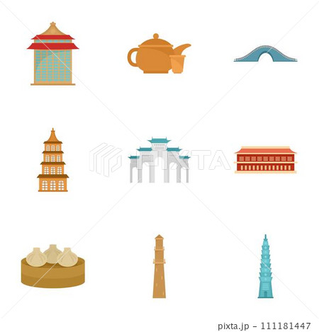 Taipei icon set. Flat set of 9 taipei vector icons for web design
