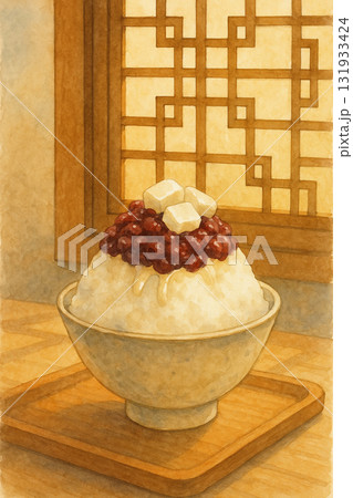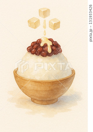 創意構圖紅豆豆花刨冰水彩食物插畫
