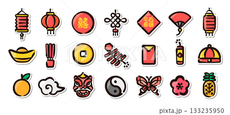 中國新年、農曆新年圖示插圖集 EPS 版本可編輯線條粗細等