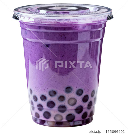 Refreshing sweet taro bubble tea, delicious milk tea boba drink with tapioca pearls for delightful treat