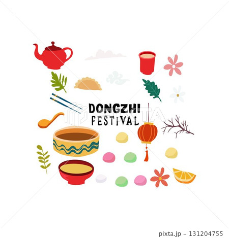 Winter solstice cultural symbols set. Asian holiday with family feast and food traditions. Dongzhi vector illustration for social media, greeting card, promotional material