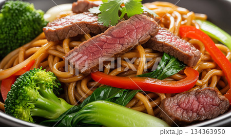 Beef Vegetable Stir Fry Noodles in Modern Bowl