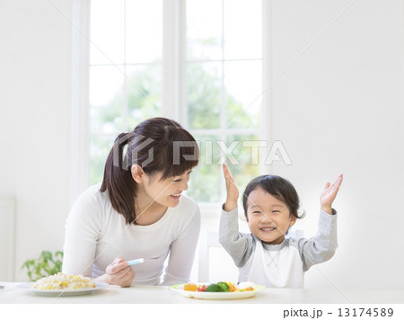 母親和孩子吃