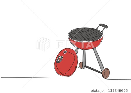 Single one line drawing barbecue grill with lid resting on its legs. The grill is cleaned. Ready to start barbecue party. Cookout. National Barbecue Day. Continuous line design graphic illustration