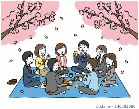 賞櫻花的人們的插圖