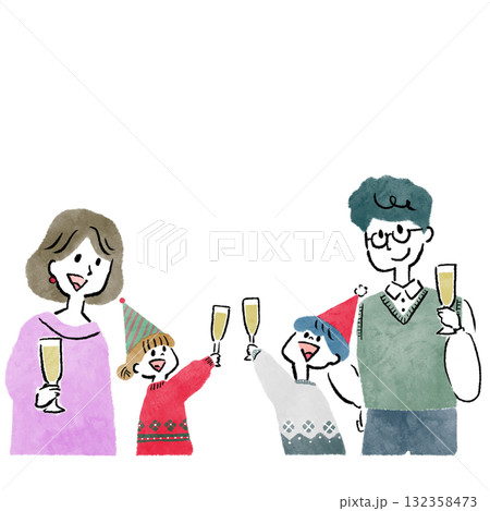 一家四口在家庭聚會上舉杯慶祝的場景-聖誕派對