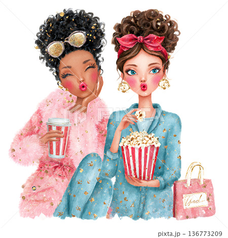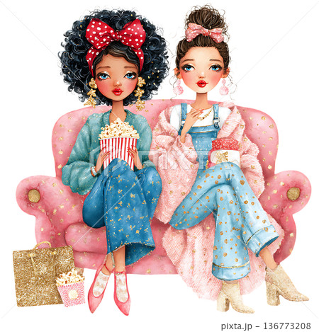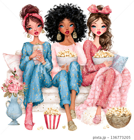 三個人在家度過女孩之夜的插圖