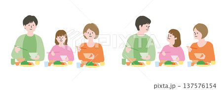 一張父女在餐桌上吃飯的插畫素材