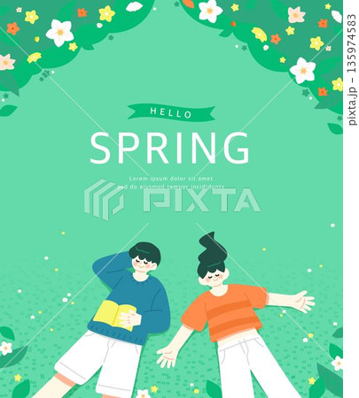 在充滿自然氣息的草地上享用午餐的場景,在春花環繞的公園裡度過假期,悠閒地享用便當盒和籃子。