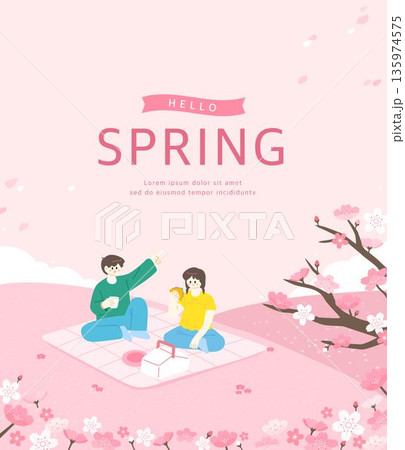 Spring Picnic Under Cherry Blossom Trees Vector Illustration