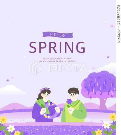 兩位女士前往欣賞紫藤花架的插圖 | 春季觀光/漫步攝影