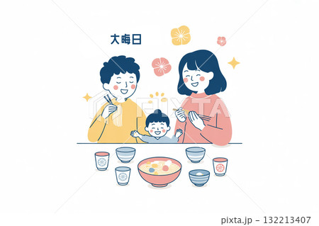 一家人吃除夕蕎麥麵的插圖(日本新年風景)