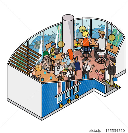 餐廳圖片,您可以在用餐的同時欣賞水族館的景色。