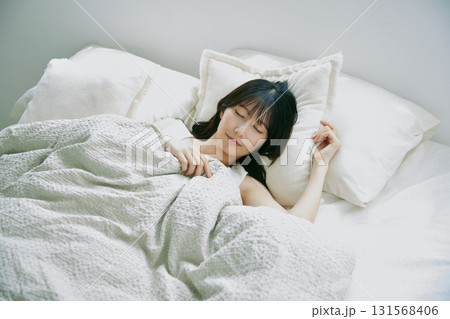 年輕女子躺在床上