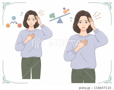 描繪女性情緒不穩定的插圖;解釋心理健康的醫學和教育材料。
