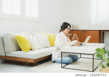 在家看計算機的婦女