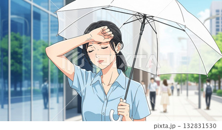 辦公室女職員在高溫下頭暈,上班途中中暑的女性,以及在烈日下頭暈的女性的危險症狀