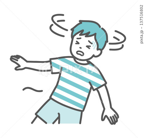 插圖描繪了一個男孩(兒童)因頭暈或眩暈而即將暈倒的情景。