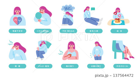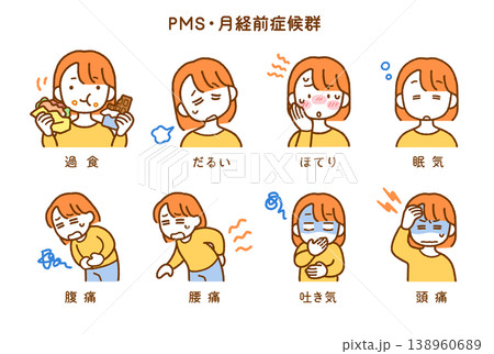 8 幅插圖描繪經前症候群 (PMS) 症狀 | 經前期與荷爾蒙平衡