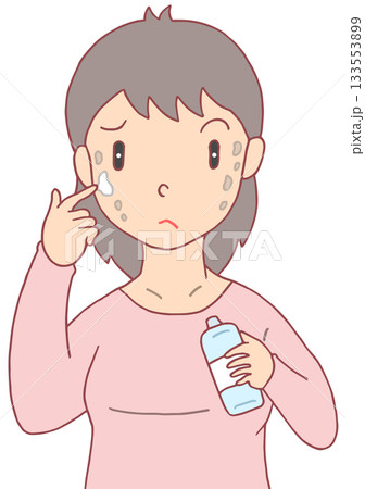 患有皮膚粗糙和皮膚病症狀的成年女性插圖素材集