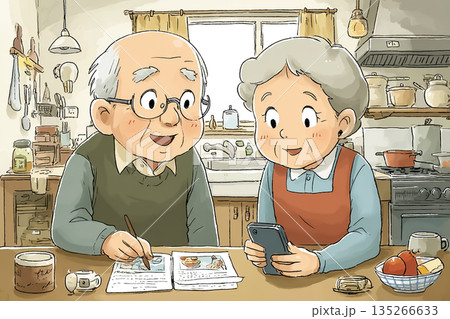圖解:一對中年夫婦配戴人工智慧智慧眼鏡購物 | 失智症預防與生活風格支持