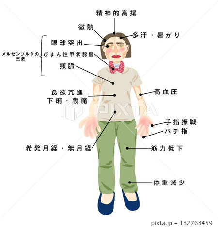 根據全身症狀繪製的格雷夫茲病(甲狀腺功能亢進)插圖(女性)