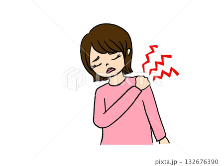手繪插圖,描繪了一位肩膀疼痛的女性