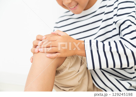 Asian doctor inject Hyaluronic acid platelet rich plasma into knee of senior woman.