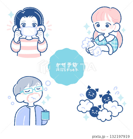 兒童傳染病預防套裝-色彩繽紛可愛的線條畫插圖