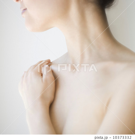 Nude woman with hand on shoulder