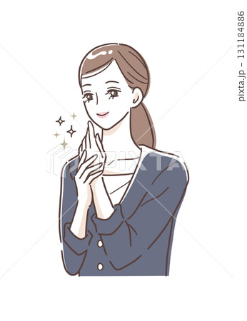 一位身穿西裝的女性做手部護理的插畫素材