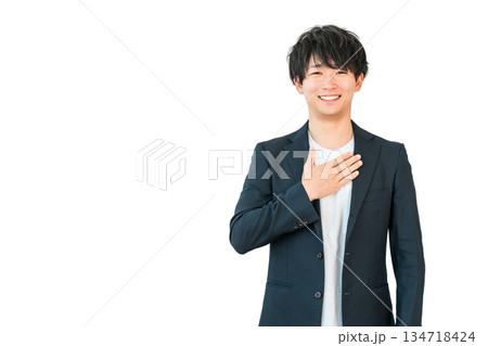 穿著夾克微笑的年輕亞洲男性商人(真誠、信任、真誠、善良、自信、真誠)