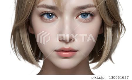 一位藍眼睛、金色短髮的年輕女子的特寫。自然美和光滑的肌膚