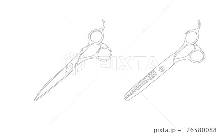 理髮店和美容院用專業剪刀和打薄剪刀的線條畫插圖