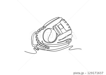 Single continuous line drawing baseball glove holding a baseball on white background. Baseball equipment for vintage sport with ball and leather glove. One line draw graphic design vector illustration