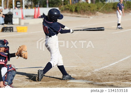 青少年棒球比賽場景 漂亮的揮桿