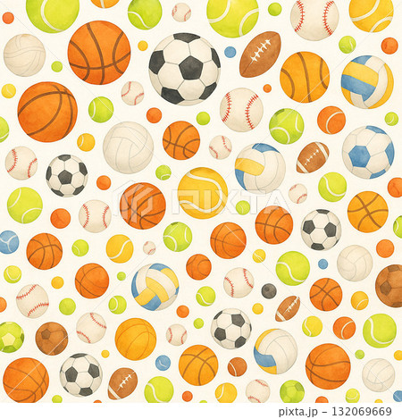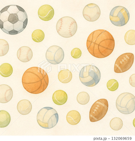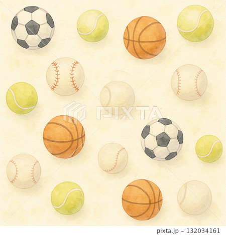 球系列:用水彩筆觸繪製的球的柔和圖案背景