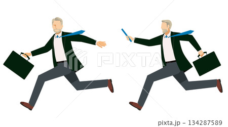 圖:一位奔跑中的老年男性商人正在傳遞商業接力棒 | 商業傳承/工作交接