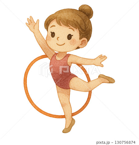 A cheerful girl skillfully balances on one leg with a hula hoop, exemplifying joy.