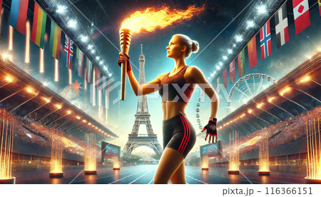 AI 產生的圖像:一名年輕女子站在海邊,手舉白布向天空