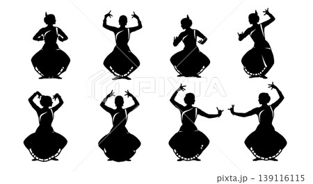 Black Solid Odissi Dancer Silhouettes Set of Six on White Background