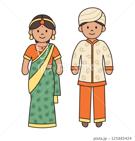 TRADITIONAL INDIAN costume male and female illustration cute kawaii style cultural diversity couple clothing dress outfit around the world ethnic fashion