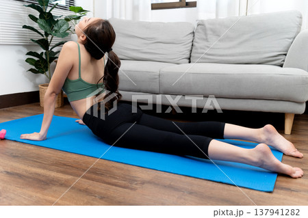 Asian women are exercising with yoga poses, health and wellness concept, exercise