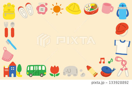 幼兒園/托兒所邊框背景橫向手寫粉彩可愛插圖
