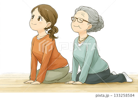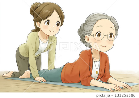 美優系列:雙人瑜珈 美優與老年人一起進行側向伸展運動