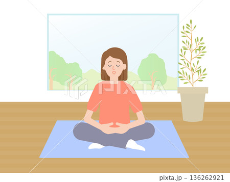 一位女性在瑜珈墊上練習瑜珈姿勢的插圖(健身/健康)