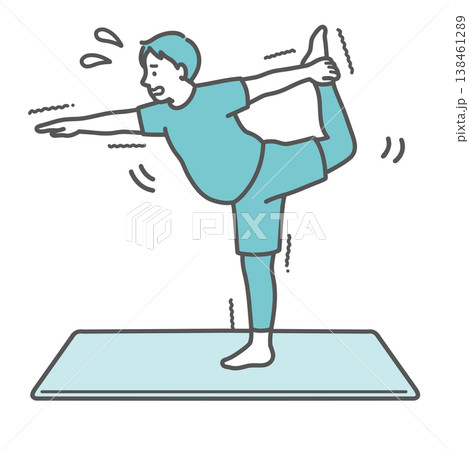 一幅插圖,描繪了一個胖男人努力做瑜伽(舞蹈姿勢)。