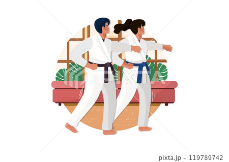 Couple practicing material arts at home gym