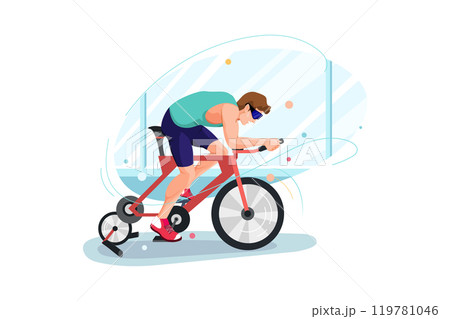 Man doing cycling on bicycle simulator