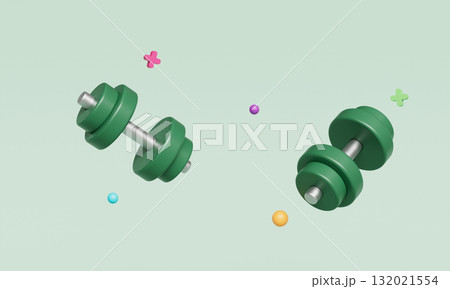 Green Dumbbell for Fitness and Strength Training. 3D Rendering.